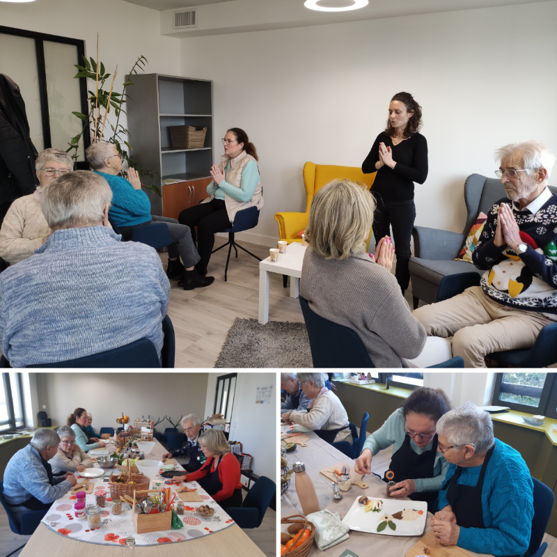 Pour cela nous créons des espaces de répit, de détente et d’expression, où la sophrologie et l’improvisation culinaire s’allient pour favoriser la créativité, la reconnexion à soi et le lien aux autres.